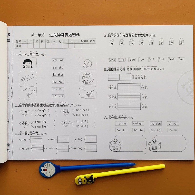 小学一年级语文上册单元 同步期末冲刺期中1年级语文测试卷拼音字词句子积累运用阅读专项训练期末真题重点模拟考试卷子 试卷人教版