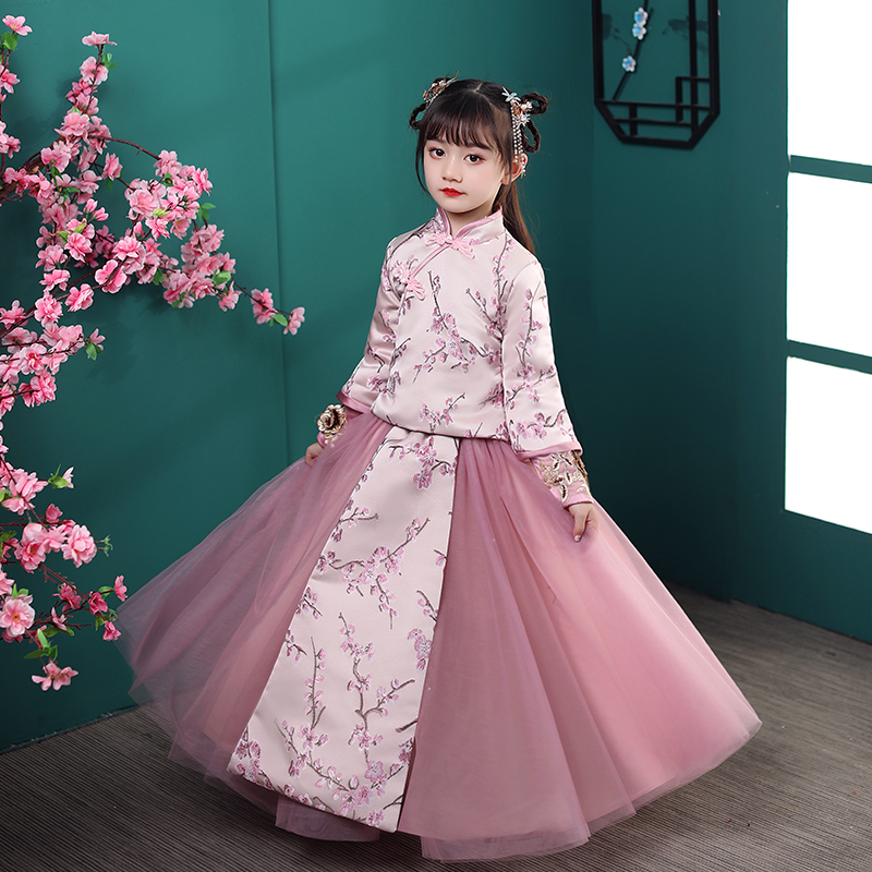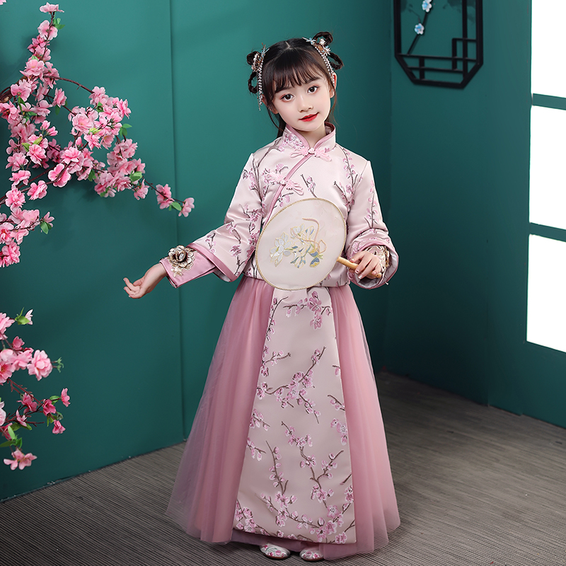 拜年服宝宝女加厚 中国风礼服粉色旗袍儿童唐装 汉服女童冬装 长袖
