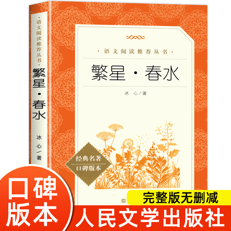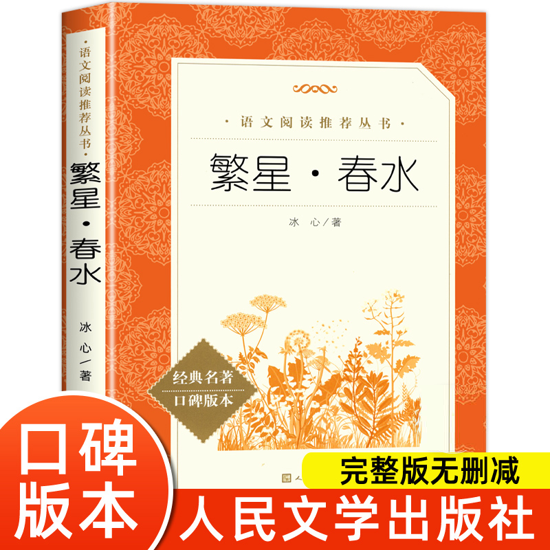 人民文学出版 繁星春水 初中生书籍小学生三四五六年级无障碍阅读课外书七八九年级课外阅读 原著诗歌精选冰心无删减完整版 社 冰心