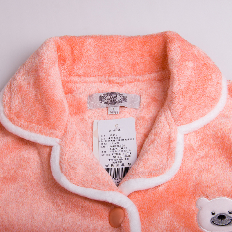 法兰绒家居服冬季 美标冬款 女士睡衣秋冬女翻领纯色珊瑚绒两件套装