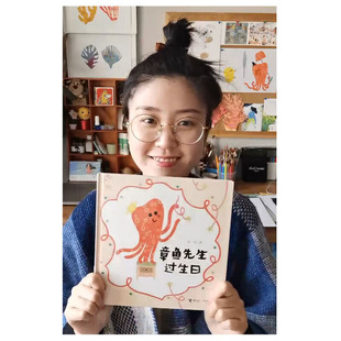 接力出版 彩色插图0 社直营 精装 3岁儿童幼儿园专用创意拼贴绘本图画宝宝动物认知色彩启蒙韩煦作品正版 章鱼先生过生日