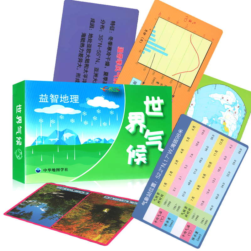 益智地理 趣味卡牌游戏 E家图系列中小学生地理学生速记卡片 学习记忆资料书 中华地图学社 地理气候知识强化复习 世界气候