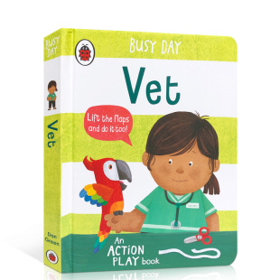 忙碌 Vet纸板书儿童英语入门启蒙机关操作翻翻活动玩具书亲子互动阅读读物趣味认知绘本正版 一天 Day 宠物医生Busy 进口英文原版