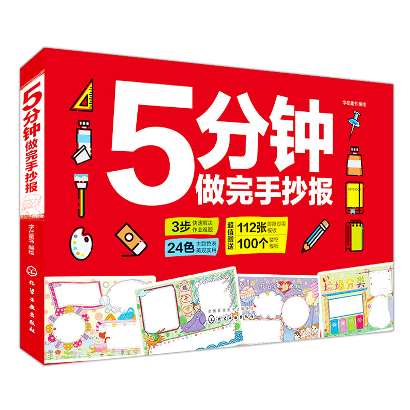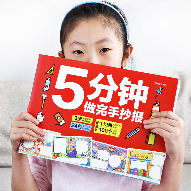 正版 零基础入门即撕即用快捷模板镂空图案教师国庆节六一节常见校园主题黑板报小学手抄报涂色 5分钟做完手抄报素材范例设计手绘版