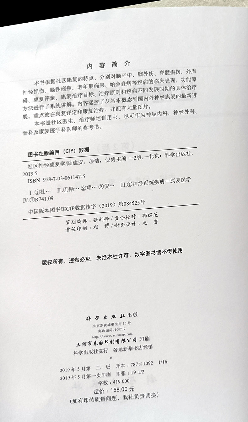 社 科学出版 9787030611475 神经损伤瘫痪老年期痴呆帕金森疾病临床表现功能障碍康复评定康复治疗目标 社区神经康复学第2版