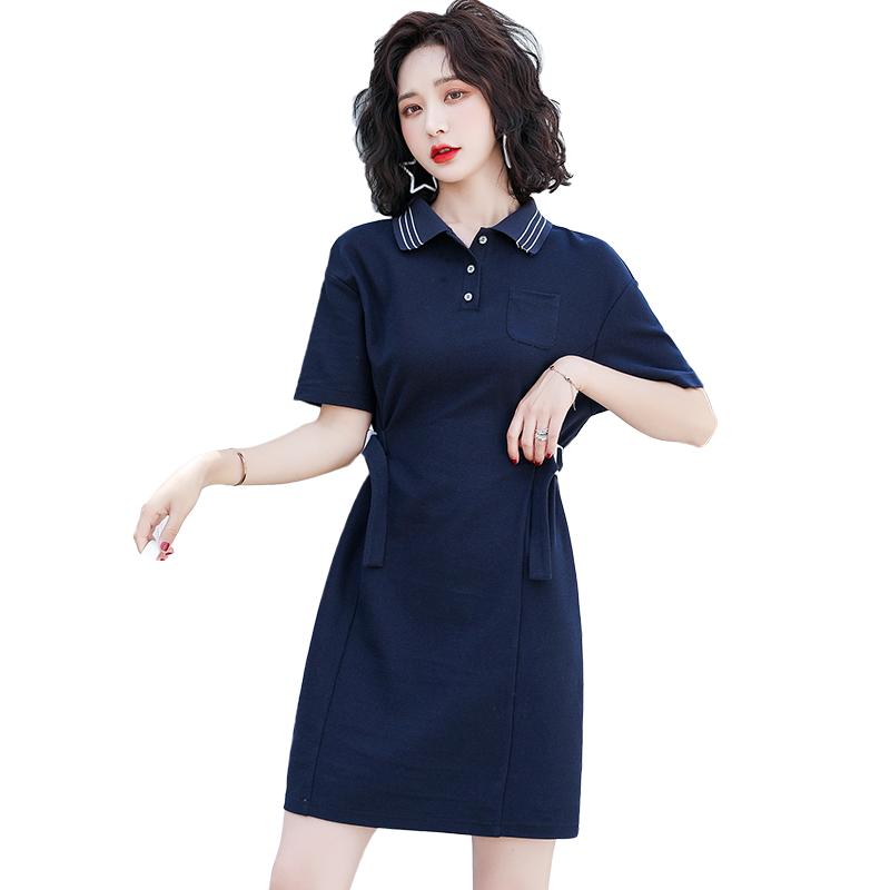休闲简约复古气质收腰显瘦短袖 连衣裙女装 韩版 2020新款 中裙子 夏季