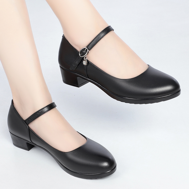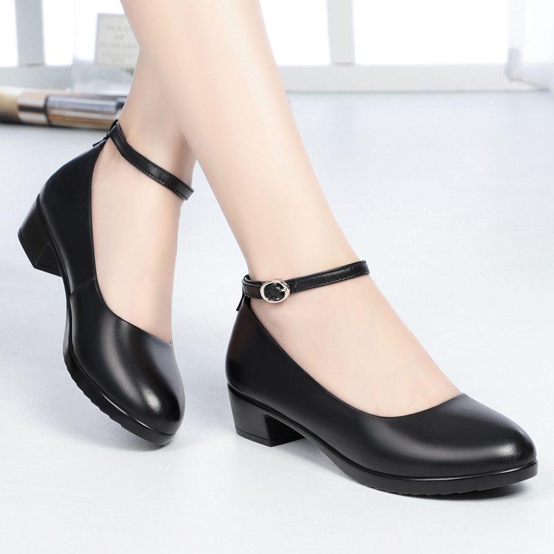 女黑色平底软底圆头皮鞋 妈妈女鞋 工鞋 大码 职业浅口单鞋 真皮工作鞋
