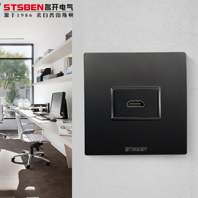 4K视频高清HDMI插座 黑色 86型墙壁暗装 多媒体电脑投影仪hdmi面板