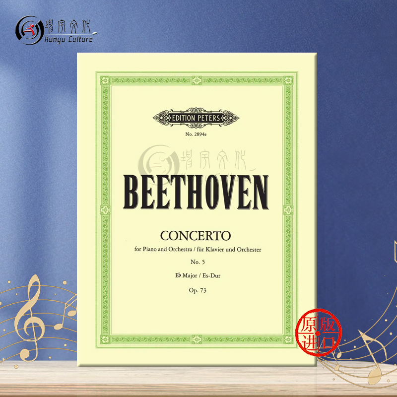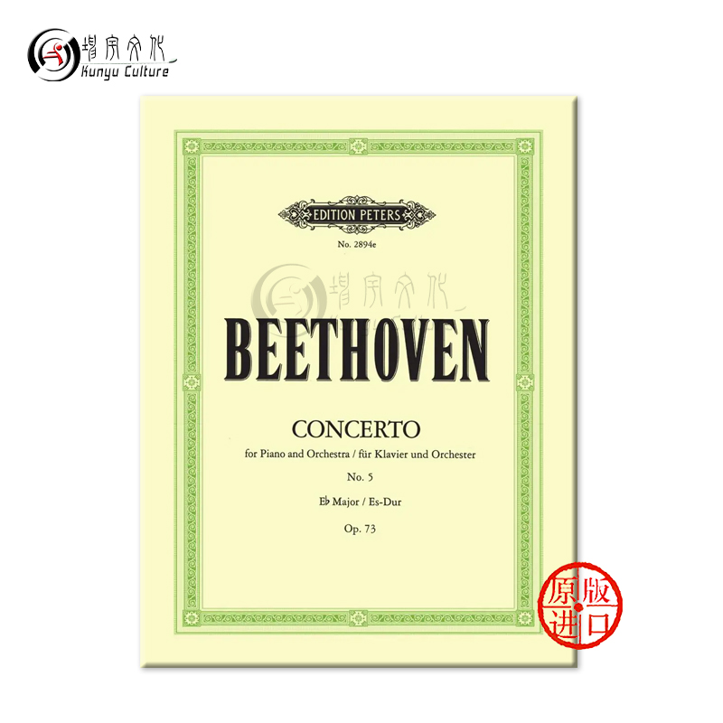 第五钢琴协奏曲 彼得斯原版 双钢琴 贝多芬 Beethoven major 降E大调op73 Concerto EP2894E Emperor 进口乐谱书 皇帝