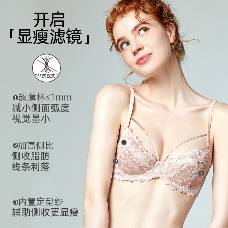 好奇蜜斯大胸显小胸防下垂内衣女法式 超薄性感纯欲蕾丝文胸罩套装