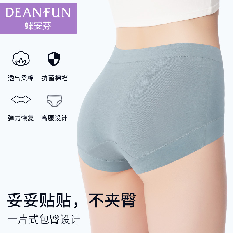 衩 头加长裆不夹臀小平角底裤 蝶安芬中高腰女士内裤 纯棉抗菌裆短裤