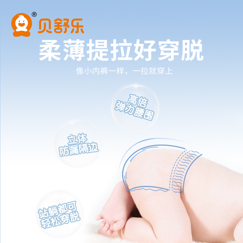 贝舒乐拉拉裤 XL真芯薄L男女婴儿超薄干爽透气XXL尿不湿XXXL成长裤