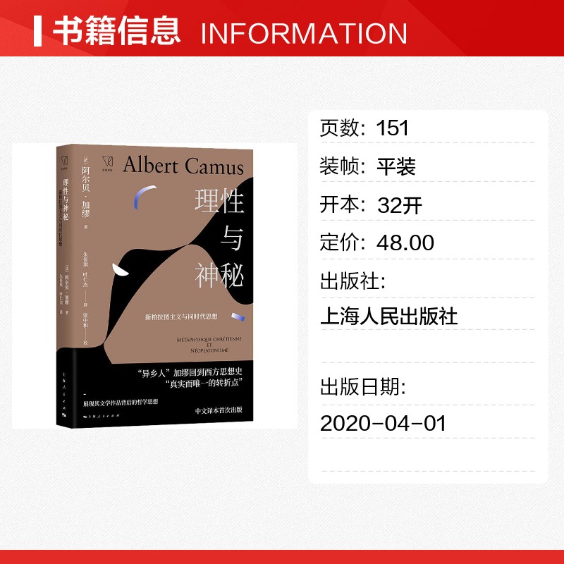 朱佳琪 新柏拉图主义与同时代思想 Camus 理性与神秘 叶仁杰 新华书店正版 阿尔贝·加缪 外国哲学社科 法 图书籍 Albert 译 著