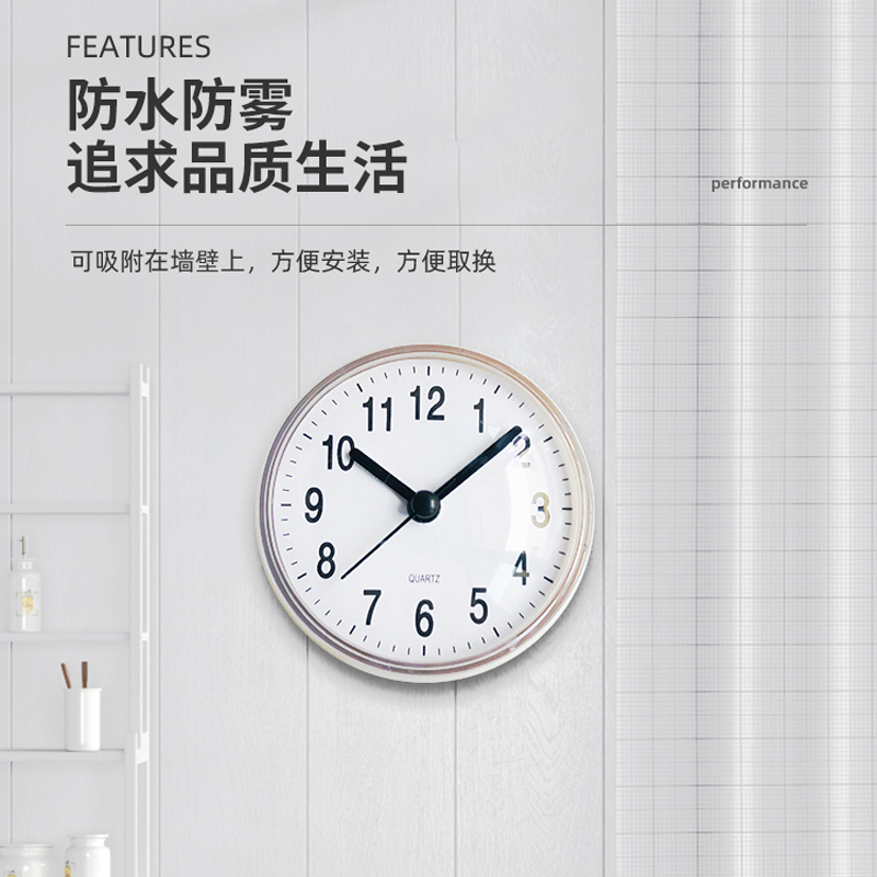 浴室挂钟吸盘钟表防雾防水厨房卫生间时钟冰箱贴钟迷你超小台钟