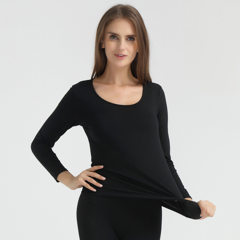 基础保暖女士套装 棉莱卡秋衣秋裤 16268 圆领薄款 雪竹内衣秋冬新品