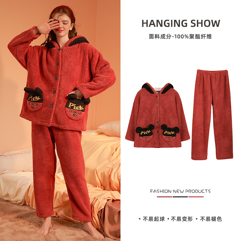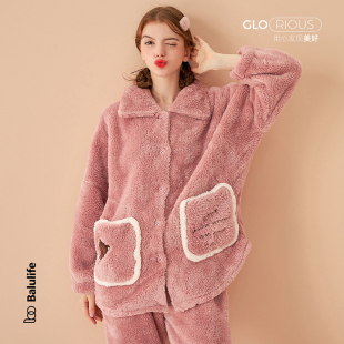 珊瑚绒睡衣女海岛绒薄绒秋冬天保暖保暖睡袍开衫 清仓 家居服 断码