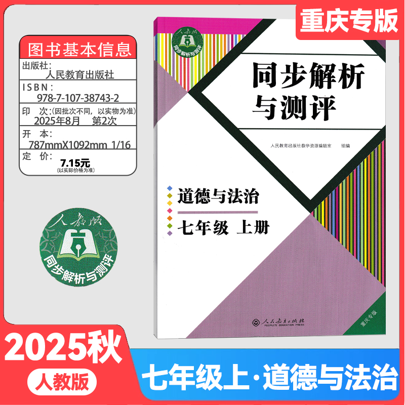 初中初一同步练习册同步解析与测评 7年级上册RJ版 七年级上册道德与法治 同步解析与测评道德与法治七年级上册人教版 2025秋重庆专版