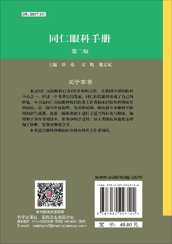 眼科疾病书籍 社 第二版 吴晓 魏文斌主编 徐亮 同仁眼科手册 第2版 科学出版 正版 眼科医生 现货当日发
