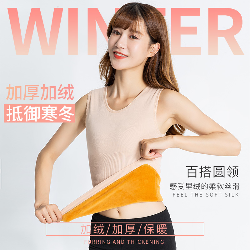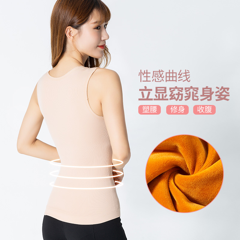 南极人德绒发热内衣无痕保暖背心女士加绒打底上衣带胸垫冬季 内搭