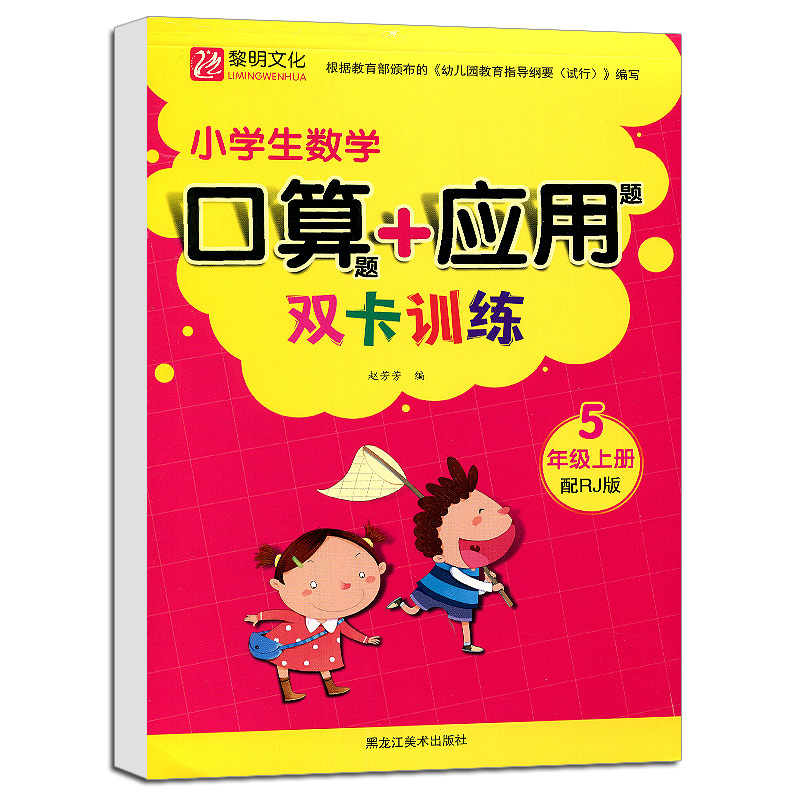 本小学生数学口算 社 应用双卡训练五5年级上册配RJ版 黑龙江美术出版 赵芳芳编 小学五年级适用数学口算加应用题 全新版