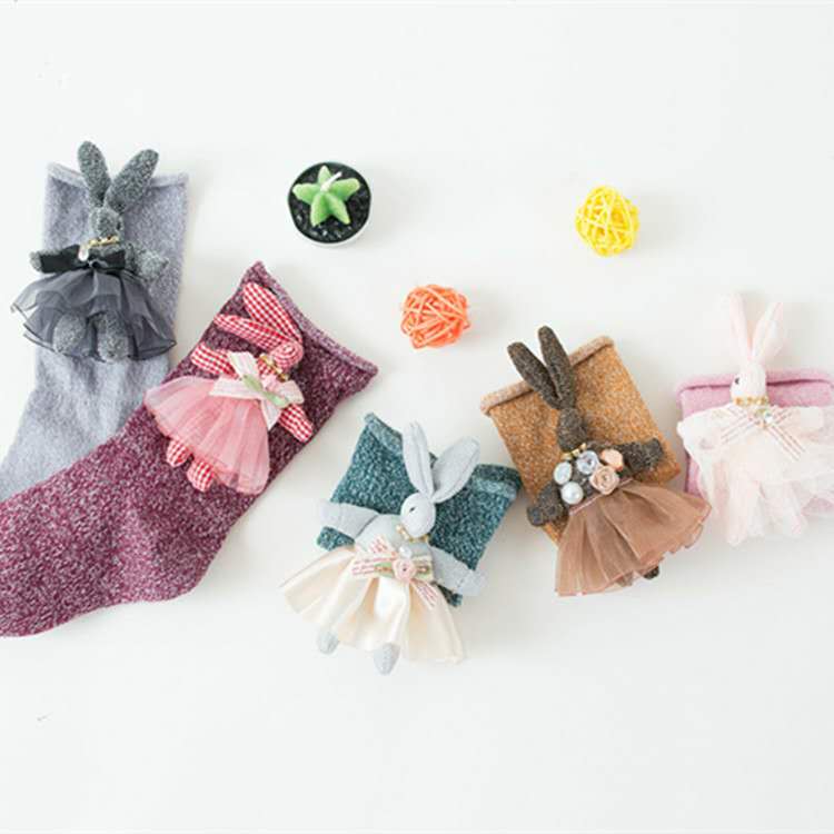 闪闪金丝糖果色卡通兔子公主中筒袜 女童袜子春夏新款 清仓