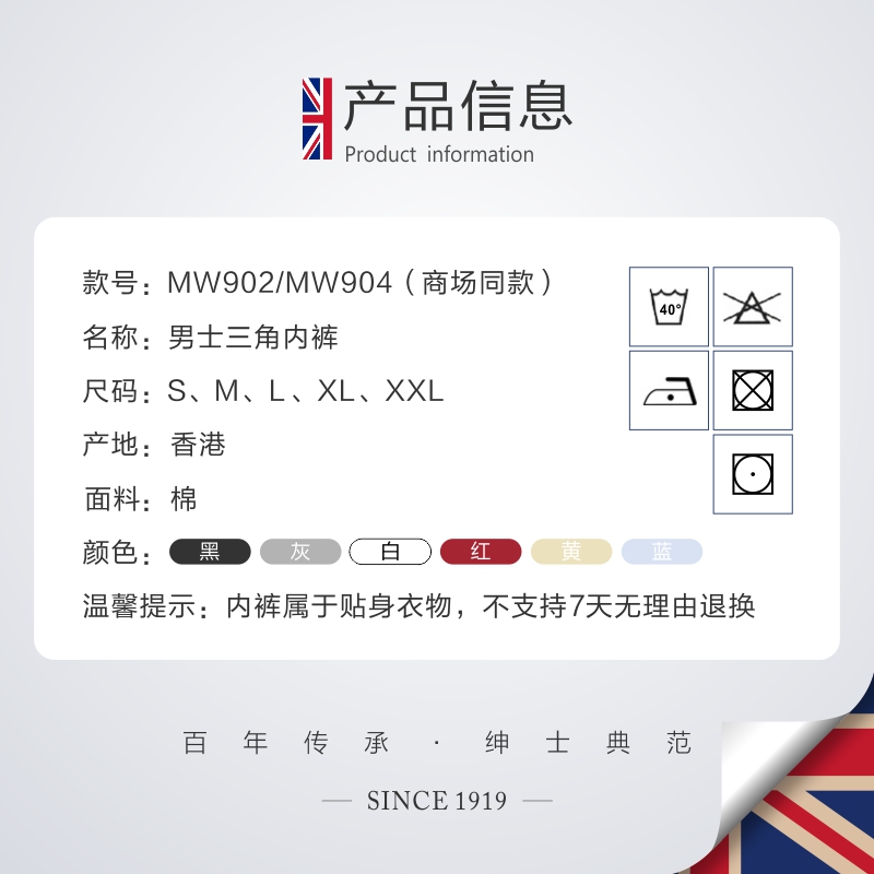 送礼MW902 男性感透气运动款 三角内裤 Byford百富青年U凸纯棉男士
