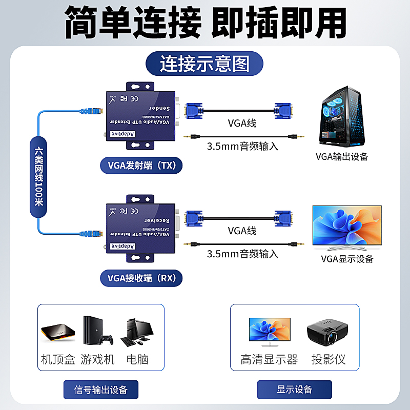 高清VGA网络网线延长器100米200米300米转rj45信号放大增强传输器KVM带USB键盘鼠标网线转VGA延长器50米60米