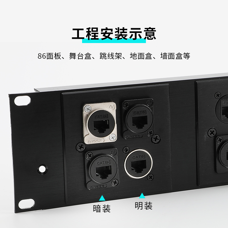 机箱超五六类网口CAT5E 6A万兆网络RJ45压接对接插座面板D型模块