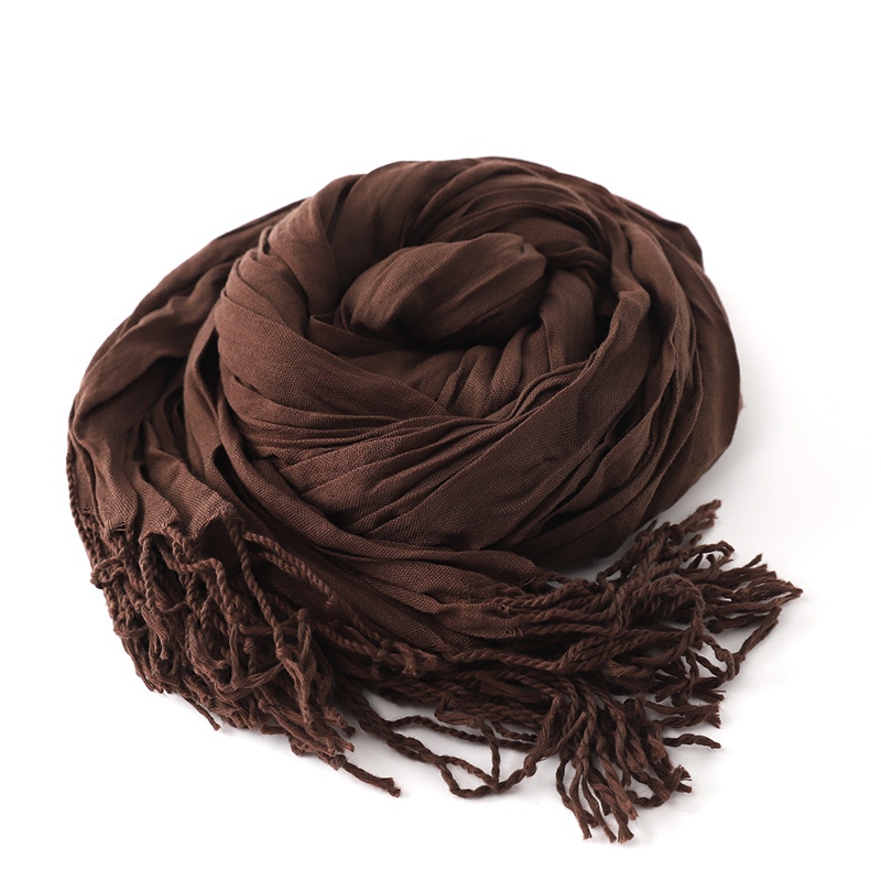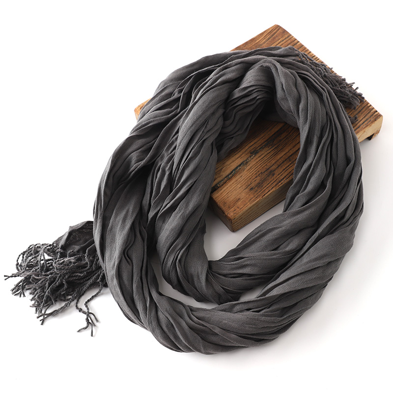 黑色长围脖学生时尚 褶皱围巾男士 纯色百搭薄款 新款 文艺复古 秋冬季