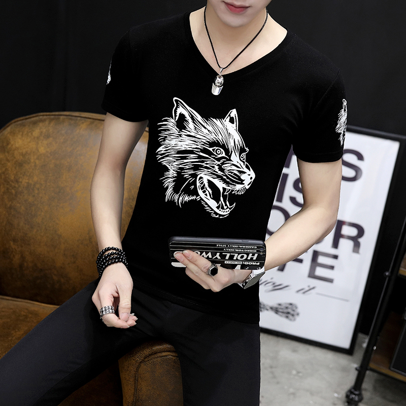 潮流2025夏天新款 男t恤韩版 百搭修身 学生个性 体恤 男士 V领半袖 短袖