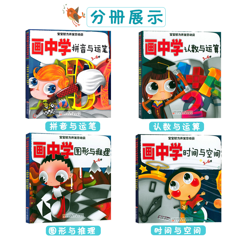 宝宝智力开发总动员 画中学拼音与运笔 全四册 4本39 全脑开发思维导图游戏 时间与空间 包邮 图形与推理 认数与运算