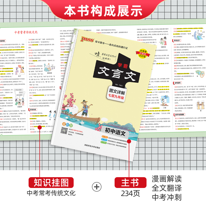 2025学霸笔记初中文言文新版 初中文言文全解阅读译注与赏析语文七八九年级上下册古诗文古诗词大全中考完全解读pass绿卡图书