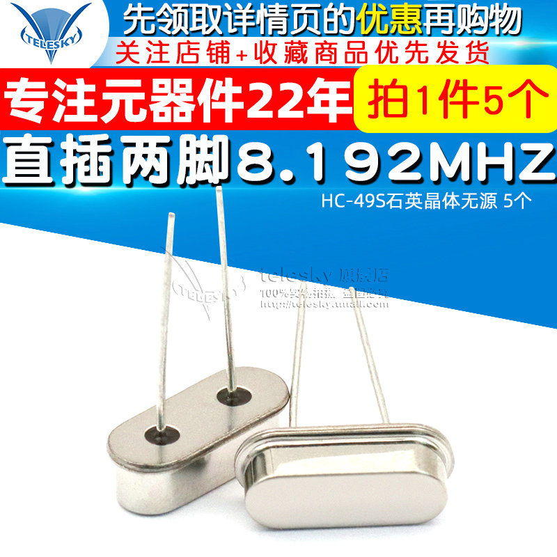 49S石英晶体无源 TELESKY 直插两脚8.192MHZ 5个 晶振8.192M