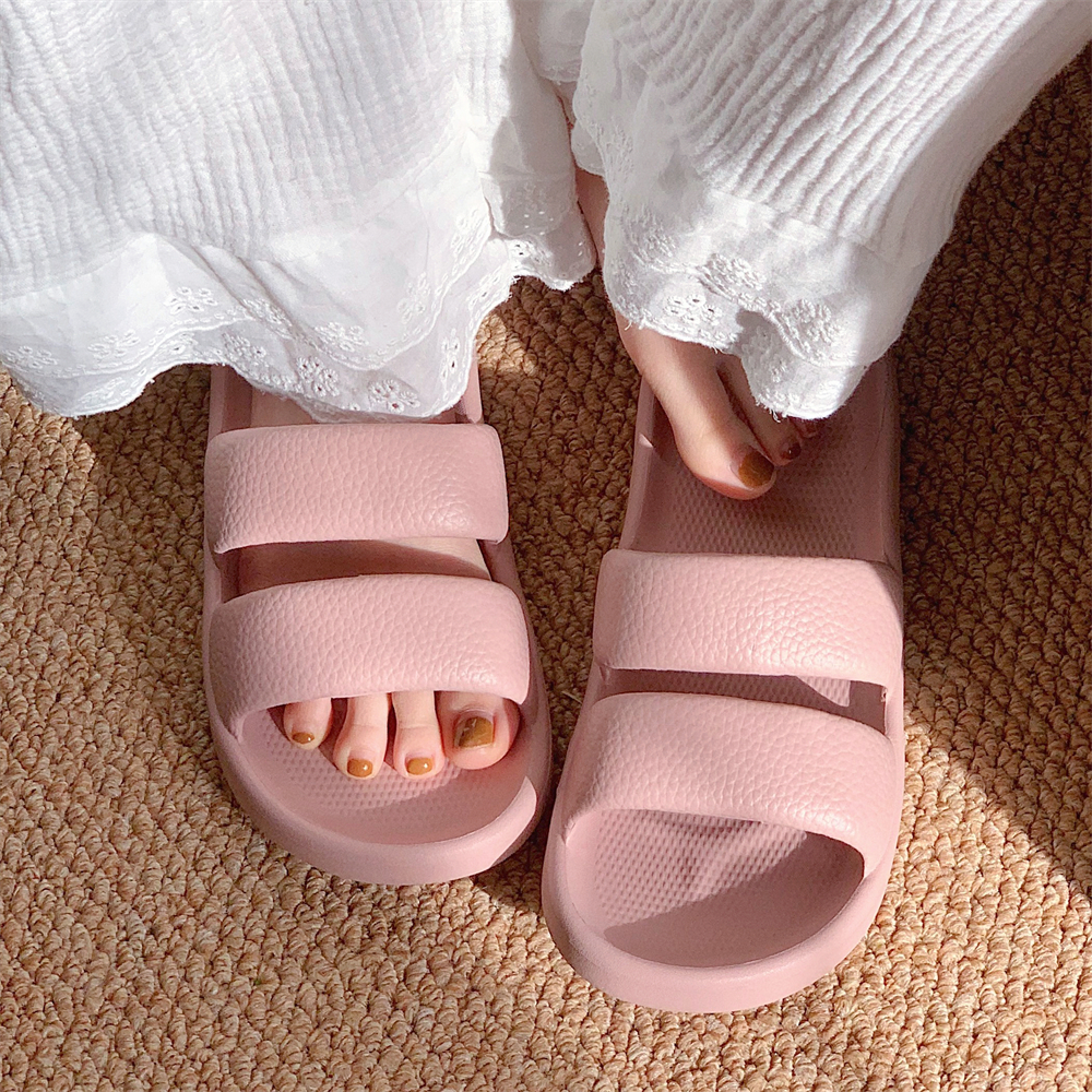 情侣外穿韩系简约纯色双带拖鞋 舒适踩屎感防滑男女居家凉拖鞋 夏季