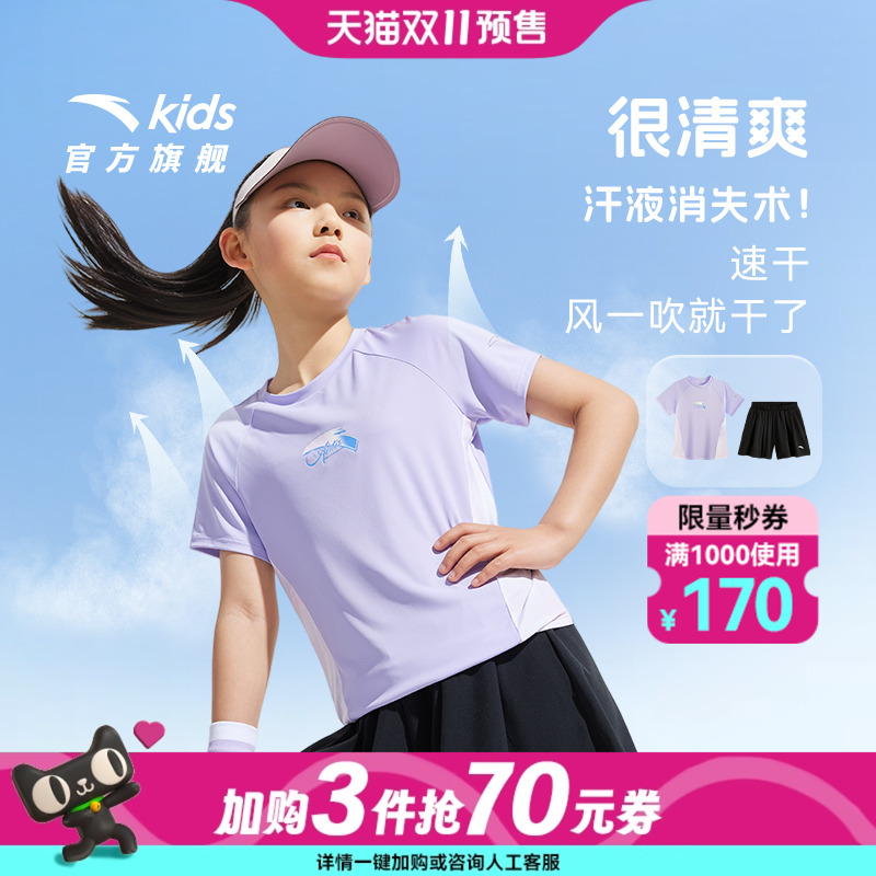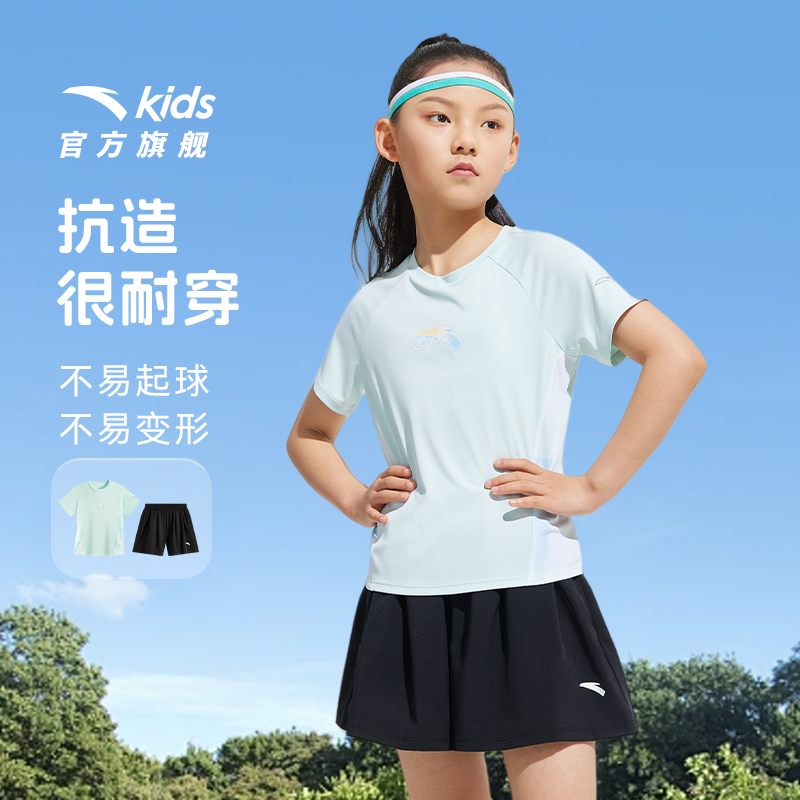 T恤短裤 安踏儿童女童学生运动套装 短袖 新款 两件套女孩 2025年夏季