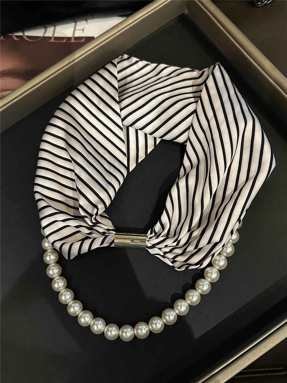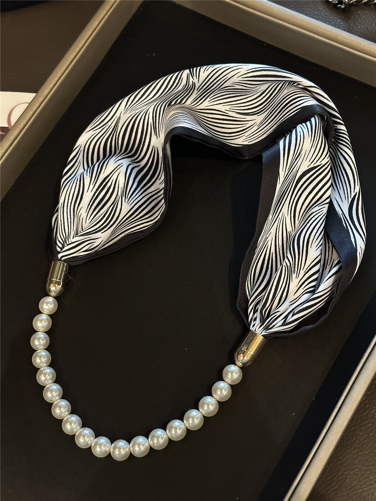 饰吊坠领巾简约百搭围巾领巾 装 韩版 ins珍珠项链磁吸小丝巾女夏季