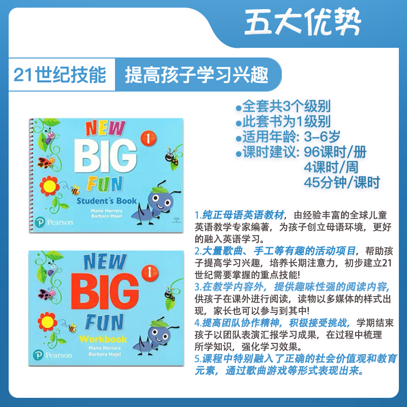 big new fun1级别 幼儿园小班英语入门系列学生套装 6岁幼儿园小班早教儿童零基础 新版 培生朗文