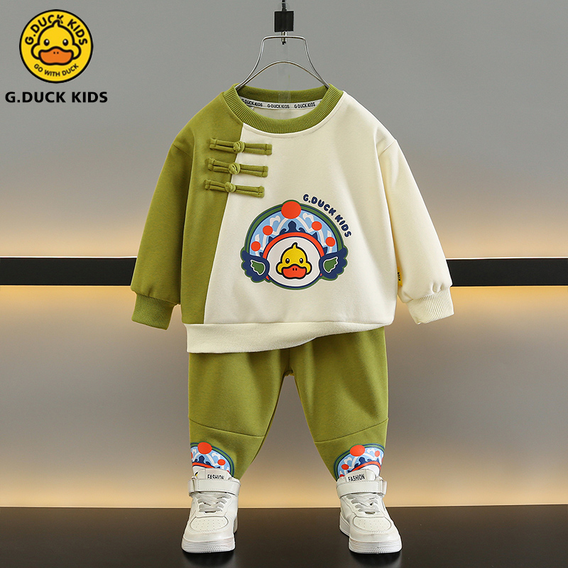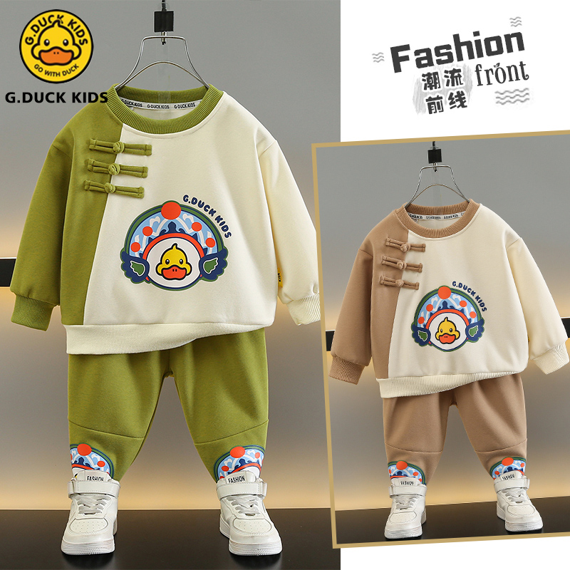 卡通动漫潮流男童衣服裤 小黄鸭2025新款 新中式 套装 子 春秋国风时尚