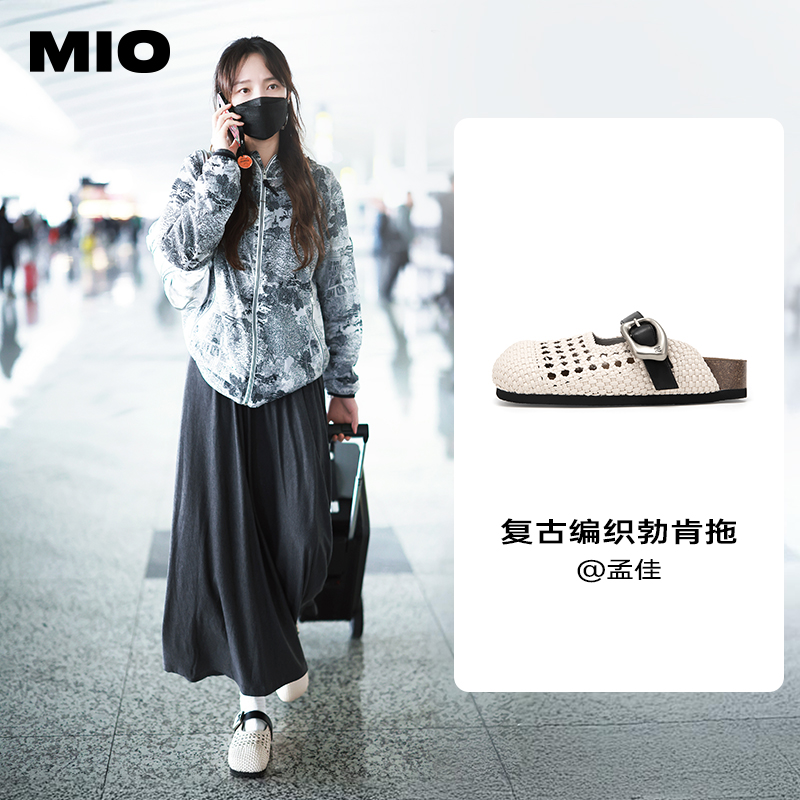 周雨彤同款 2代包头穆勒女拖E4T1DCH预 百丽厚底增高花生吐司勃肯鞋