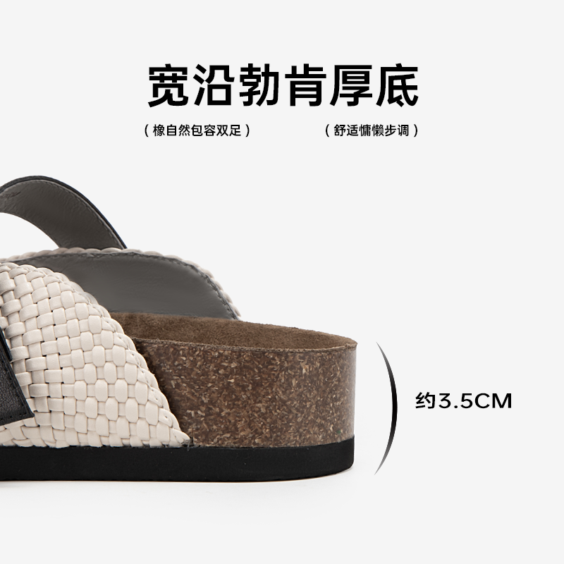 DYOWOZ 女增高3.3cm真皮厚底外穿 东园物作日系勃肯软木半包头拖鞋