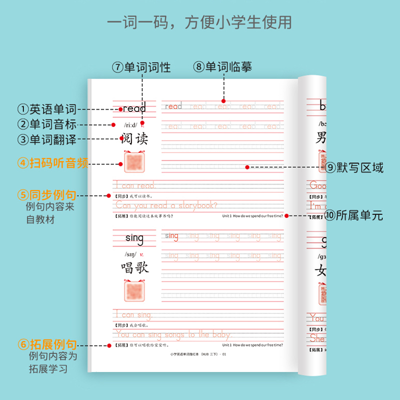6年级 英语字帖棍棒体三年级上册下册四年级五年级六年级课本同步单词句子练习听写默写本26个英文字母练习三上三下3 沪教版 牛津版