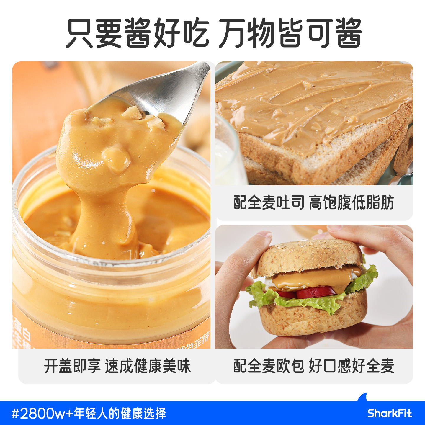 鲨鱼菲特纯花生酱0无添加蔗糖健身脂肪面包拌面调料组合小瓶宿舍