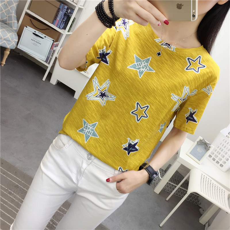 包邮 到家 2024夏季 T恤潮牌超火ins修身 9块9 黄色印花短袖 女 特价
