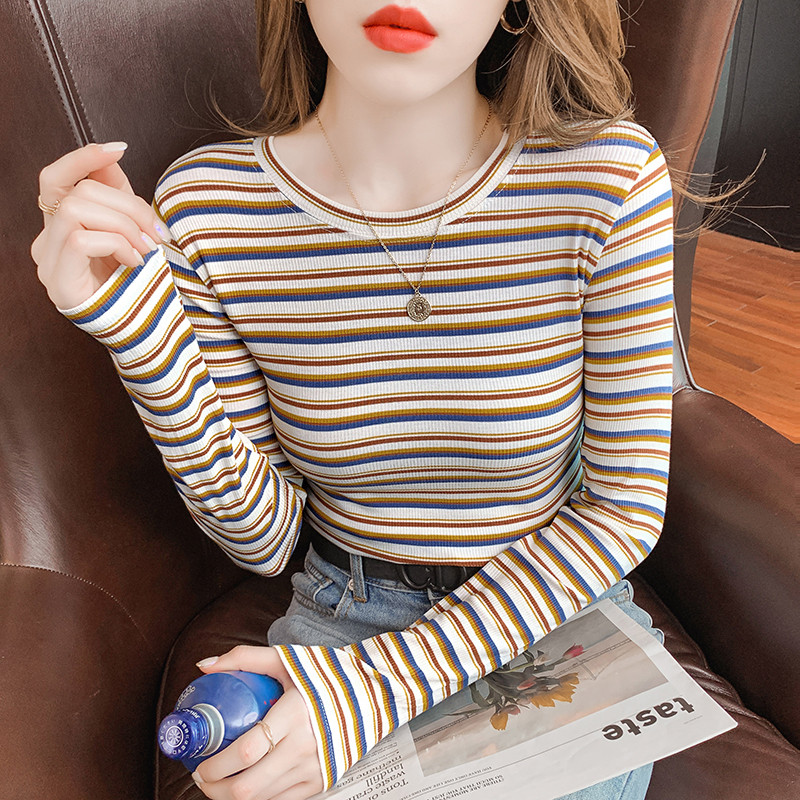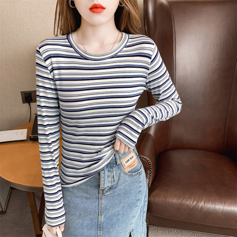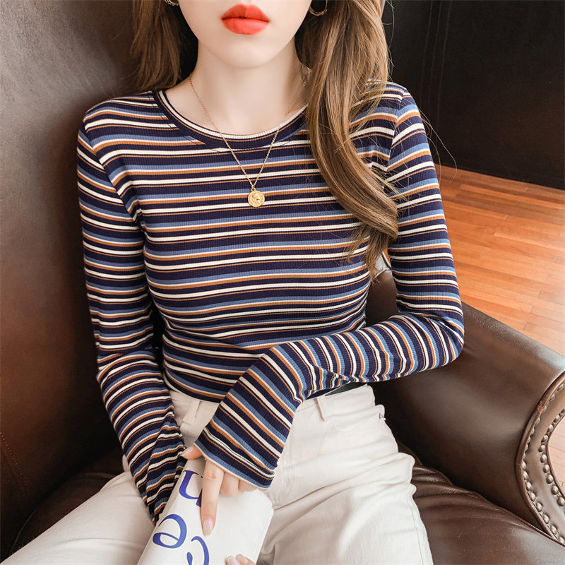 女春秋装 内搭长袖 新款 百搭修身 上衣T恤 韩版 梦里蝶纯棉条纹打底衫
