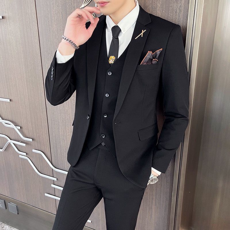 新郎结婚礼服帅气高端小西装 修身 三件套潮 男商务休闲正装 西服套装