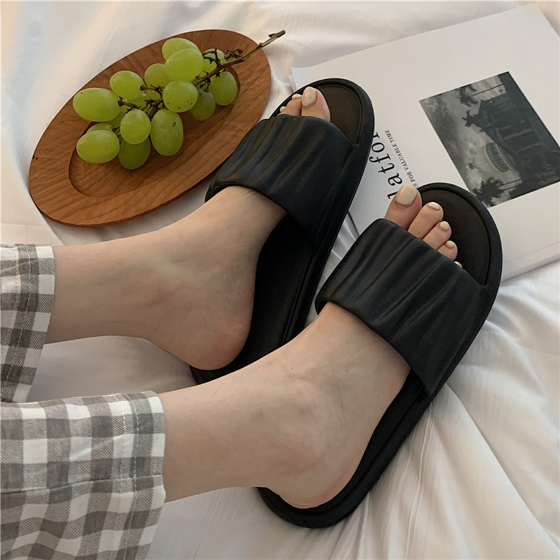 时尚 网红ins居家室内轻便eva软底拖鞋 外穿褶皱一字凉拖女 新款 夏季