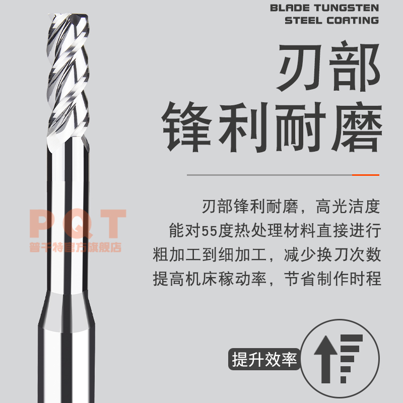 PQT铝用深沟铣刀三刃合金平刀加长避空钨钢长颈小径铜铝用1.5
