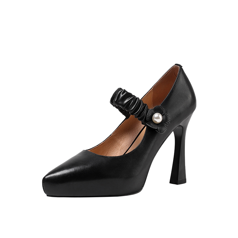 宽楦羊皮尖头细跟通勤浅口单鞋 大码 黑松露 秋冬女鞋 7or9黑色高跟鞋