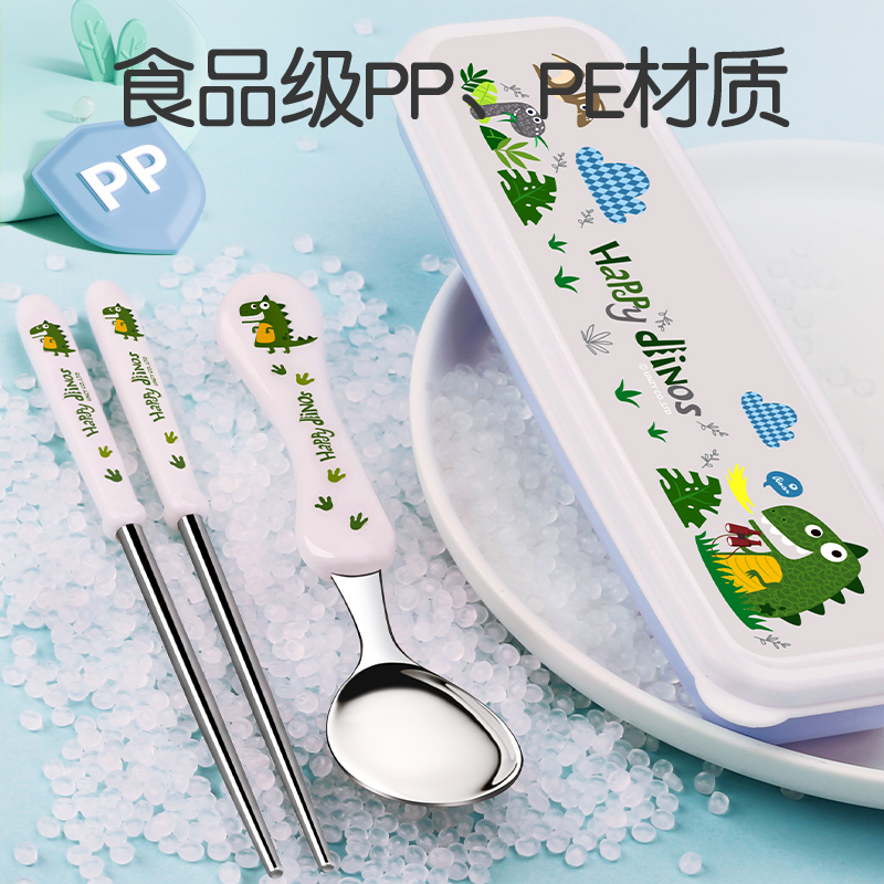 儿童勺子筷子叉套装 不锈钢勺便携筷宝宝吃饭叉勺一体学生卡通餐具