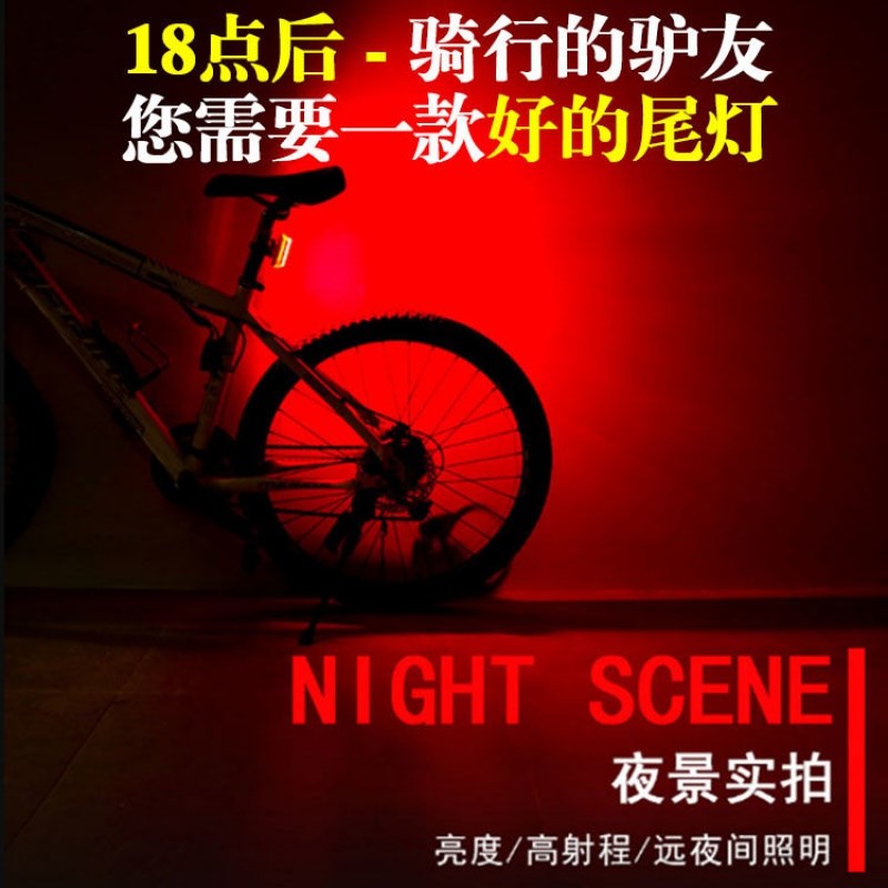 自行车尾灯USB充电闪烁配件后警示灯 备激光单车灯山地车 夜骑行装